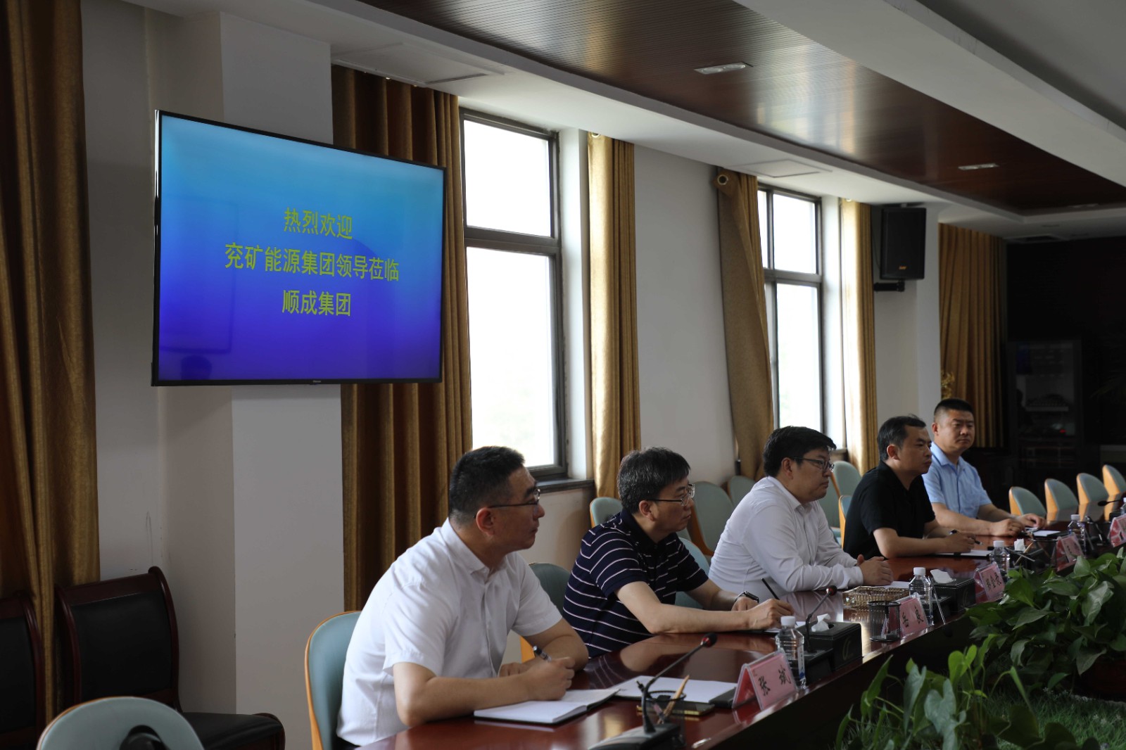 5月23日下昼,,,,王智勇董事长会见了兖矿能源集团股份有限公司营销中心党委书记、主任郑金录,,,,副主任岳良、销售科科长王伟、河南效劳处主任张斌、河北效劳处副主任徐成前等一行。。。